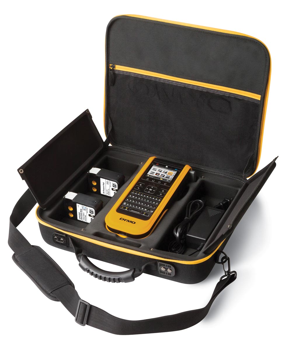 Kit versie Verpakkingsinhoud: - DYMO XTL 300 Labelmaker - draagkoffer - AC-oplaadadapter - USB-kabel - oplaadbare lithium-polymeerbatterij - 1 tape: 24 mm x 7 m universele vinyl, zwartwitte cartridge - 1 tape: 21 mm x 39 mm gelamineerd snoer/ kabelwikkel, zwart op wit, 150 labels - draagkoord - beknopte handleiding qwerty toetsenbord