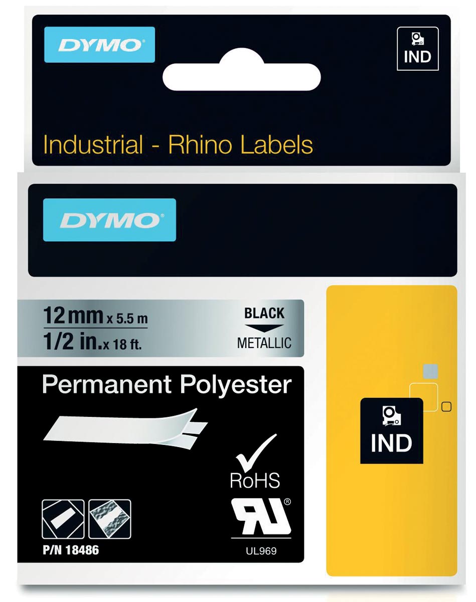 ft 12 mm x 5,5 m, polyester, zwart op metaal