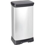 Rechthoekige pedaalemmer van geborsteld RVS met fingerprint proof coating en handige kunststof handgrepen.
