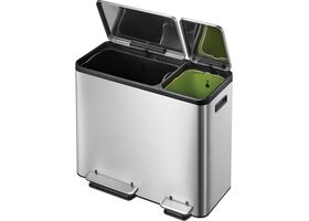 De twee pedalen geven afzonderlijk toegang tot de kunststof binnenemmers (2x 15 + 1x 15 liter) voor het scheiden van afval.