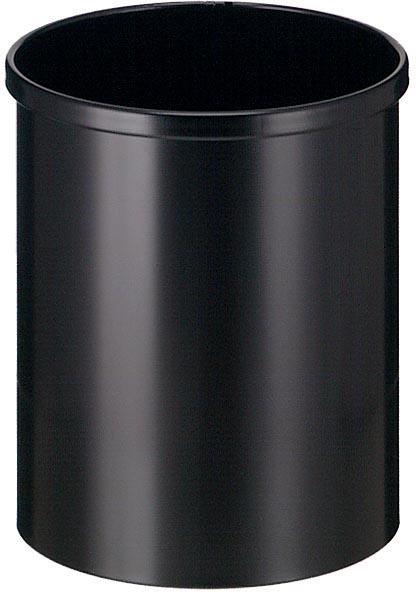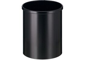 Ronde vuilbak uit metaal. Zeer geschikt voor op kantoor, of in een kleine ruimte. Hoogte: 30,5 cm, diameter: 25,5 cm. Inhoud: 15 l. Kleur: zwart.