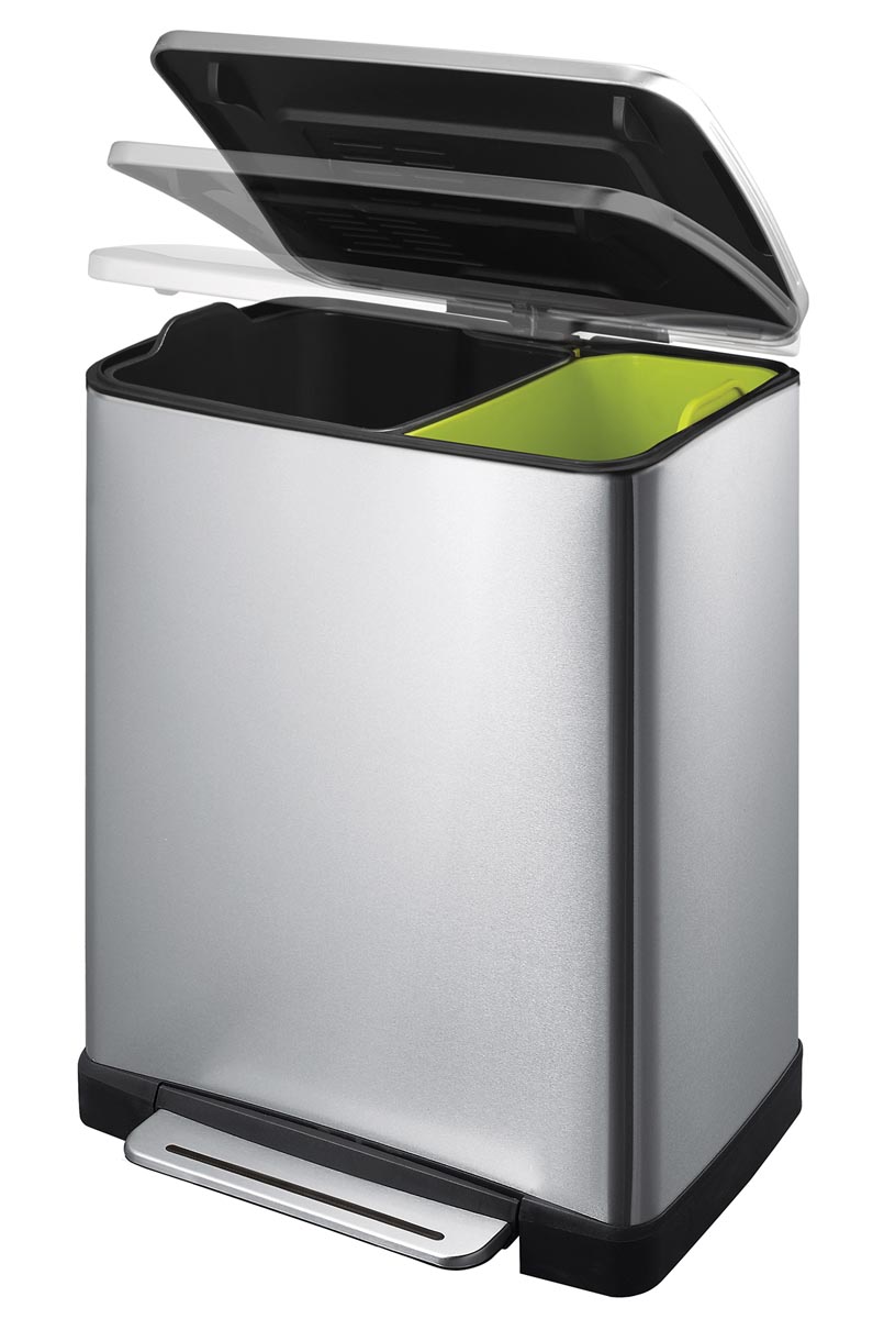 Stijlvolle rechthoekige pedaalemmer van mat RVS met extra breed pedaal.