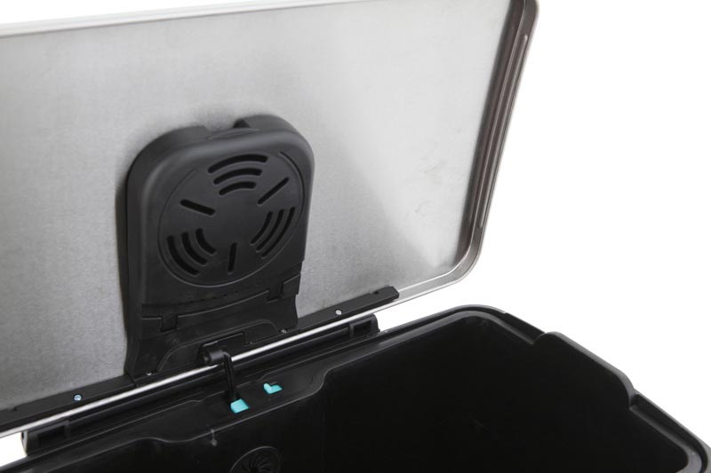 Aan de binnenzijde van het deksel is ruimte voor een carbonfilter om geurtjes te voorkomen.