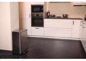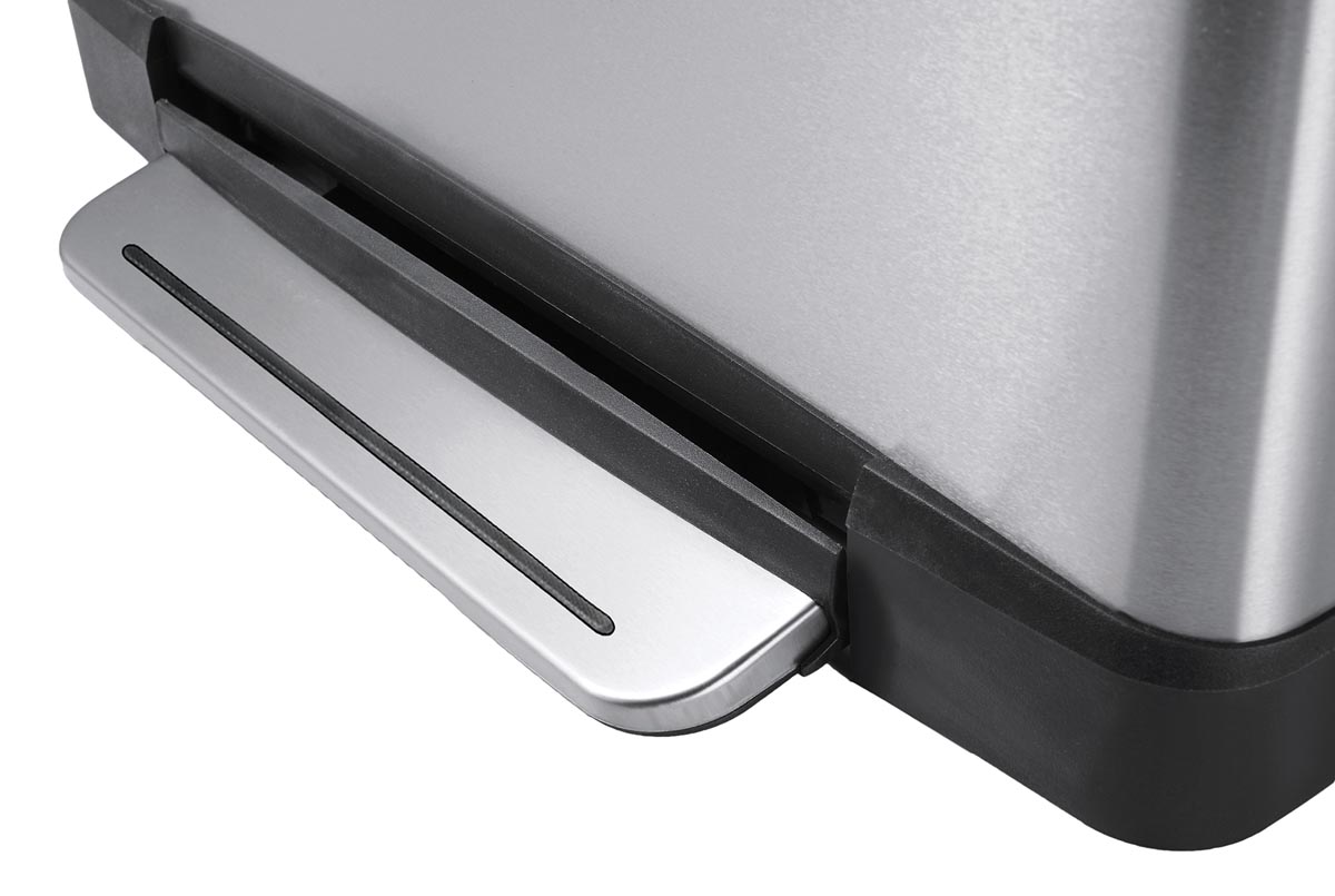 Stijlvolle rechthoekige pedaalemmer van mat RVS met extra breed pedaal.