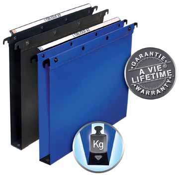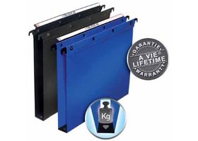 Voor ft A4. Voor intensief gebruik. Uit onverscheurbare en slijtvaste PP. Hangmap is bevestigd aan de hangstrip met klinknagels. Metalen hangstrip. Grote louperuiter. Tussenafstand: 330 mm. Bodem: 30 mm.