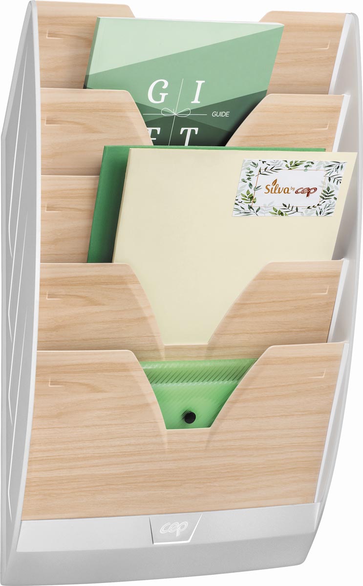 CEP wandfolderhouder met 5 compartimenten, grijs met houtmotief (1541021)
