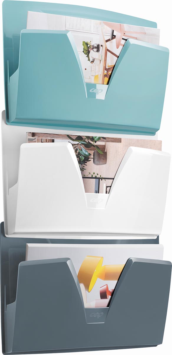 CEP wandfolderhouder met 3 compartimenten, blauw - wit - grijs (1702961)