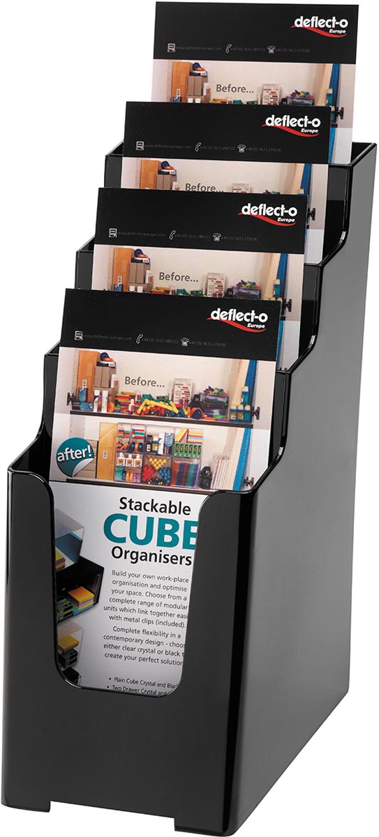 Deflecto folderhouder ft 1/3 A4, 4 opbergvakken, zwart (77704)