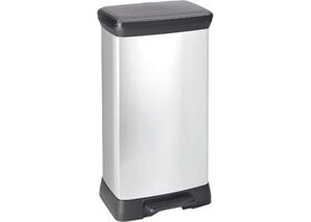 Uit kunststof. Met uitstraling van metaal. Makkelijk schoon te maken. Kleur: zwart en zilver.
