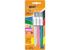 Bic Colours Shine 4-kleurenbalpen, medium, klassieke inktkleuren, blister van 3 stuks (9122751)
