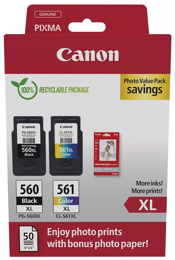 Canon photo value pack 1 x PG-560XL + 1 x CL-561XL, 300 - 400 pagina's, OEM 3712C008, 4 kleuren (3712C08)
