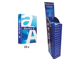 ACTIE DOUBLE A: 20 x papier A4, 80 g, 500 vel (ref. D1022) + GRATIS 1 x professionele presentatiedisplay (KI46082)