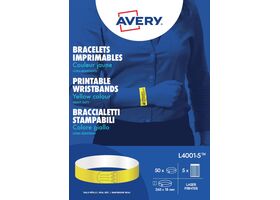 Avery bedrukbare polsbandjes, ft 18 x 265 mm, geel, pak van 50 etiketten (L40015)