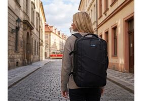 Met bagageriem om veilig aan een reiskoffer te bevestigen
