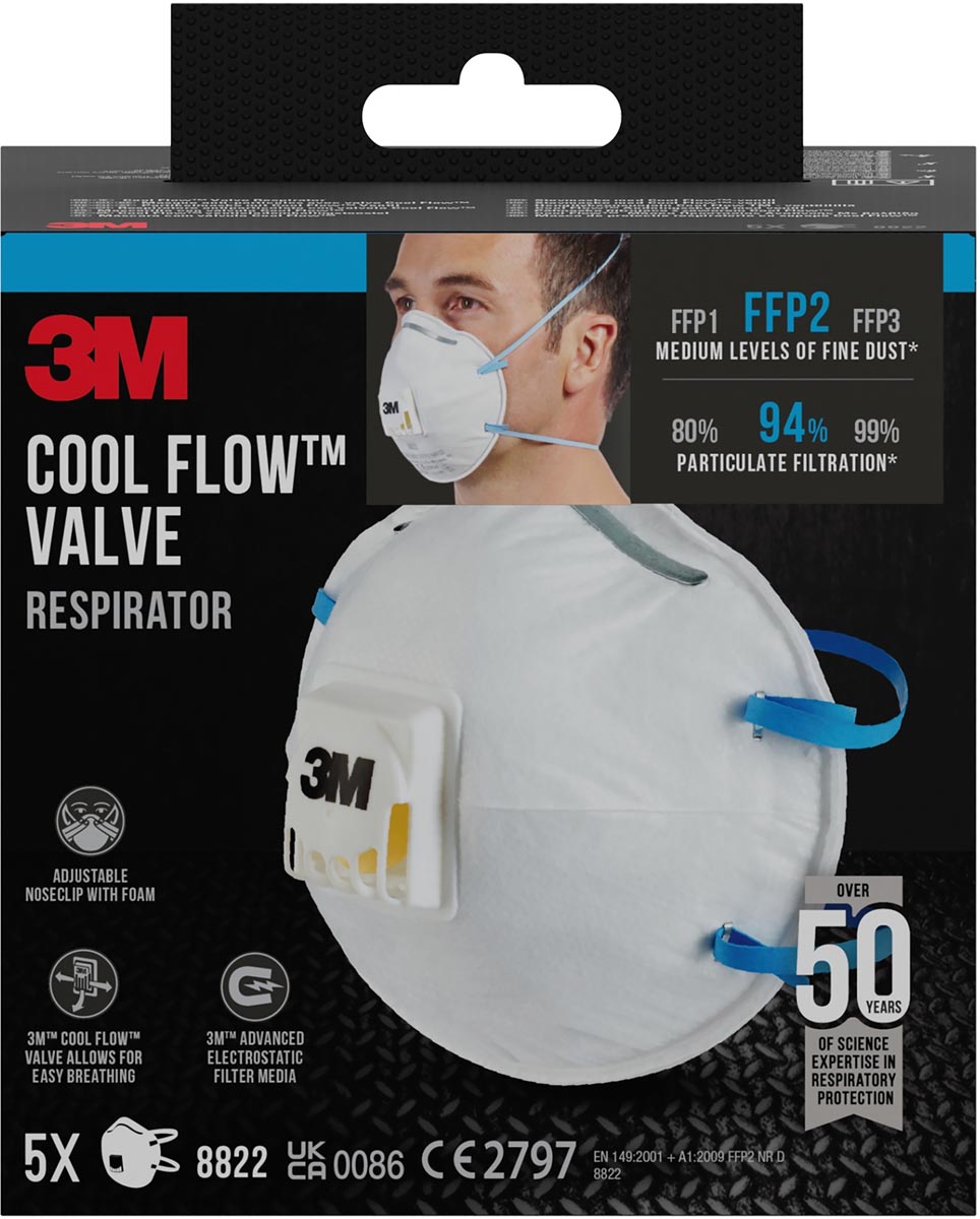 3M Cool Flow stofmasker, FFP2, met ventiel, pak van 5 stuks (8822-5)