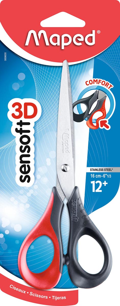 Messen uit geborsteld, roestvrij staal. Met afgeronde punt. Symmetrische ogen. Comfortabel dankzij de zachte, soepele materie van de ogen. Geassorteerde kleuren: oker/blauw en lichtblauw/donkerblauw. Op blister.