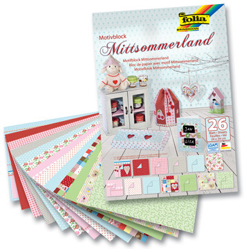 Blok met 26 vel: 13 x motiefpapier van 80 g/m2 en 13 x motiefkarton van 270 g/m2.
