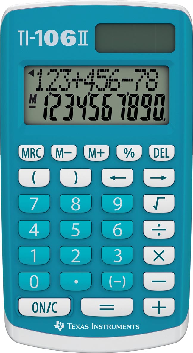 Extra groot afleesvenster en groepering in 3 cijfers. 2-regelig scherm. Grote plastic toetsen met kleurcodering. Minteken verschijnt links van het getal dat in het afleesvenster wordt weergegeven. Eenvoudig te bedienen geheugentoetsen, afzonderlijke toets voor wijziging plus-/minteken. Robuuste uitvoering. Werkt op zonnecellen en 1 knoopcel CR1220 (bijgeleverd). Ft 1.5 x 7 x 12.5 cm (h x b x d).